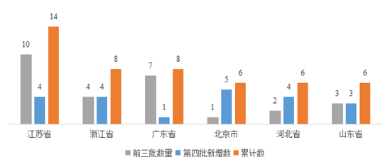 浙江今年新增4个集群,比广东多3个,总数追平广东,排名从全国第三升至并列第二。从排名看,江苏(14个)保持第一,浙江、广东(8个)并列第二,山东、河北、北京(6个)并列第三。