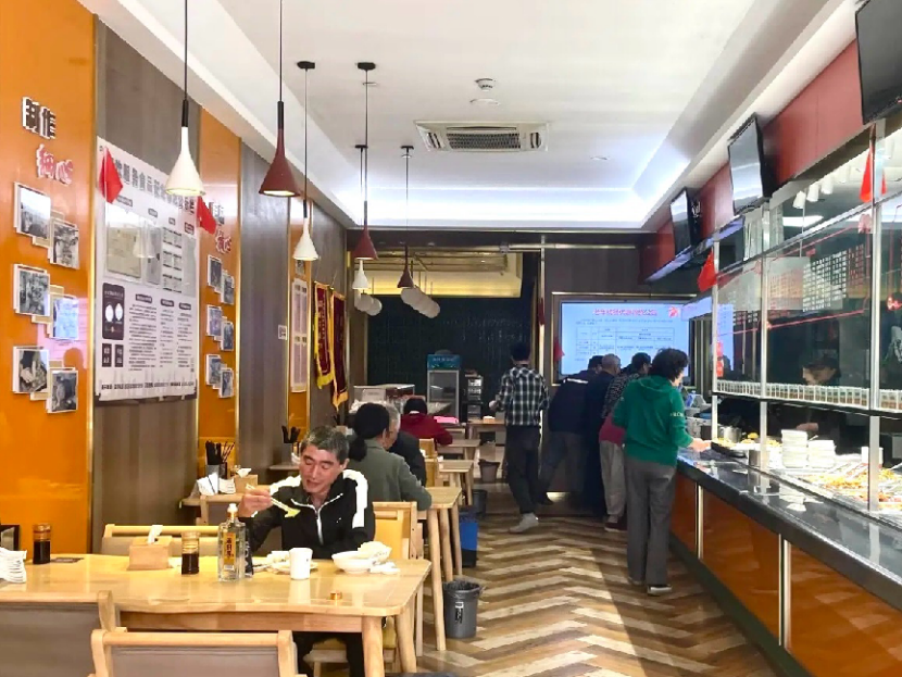 在幸福食堂创建初期,普陀民政对11家门店统一标识标牌、LOGO和文化展陈,并对地面进行防滑、尖角设施包边等处理。同时,设置老人生日角,老人活动区、敬老专座以及无障碍设施等,为老年人提供安全舒适、敬老氛围浓厚的就餐环境。目前,普陀区共投入适老化改造资金32.7万元。