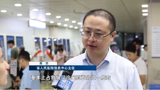 省人民医院信息中心主任 陈杰:现在使用频率每天大概会在2000(人次)左右,基本上占我们门诊量的五分之一左右。一些新的技术、新的能力,能够赋能到我们的临床,赋能到我们的管理、服务上面去,能够做得更好。
