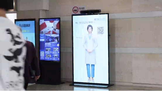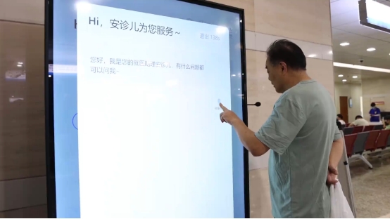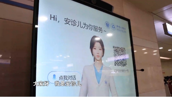 在省人民医院门诊大厅,患者沈凯健正向数字大屏里的女医生描述自己的症状,经过交流,“安诊儿”推荐他去骨科就诊,还同步将相关保健知识推送到了沈大爷的手机上。