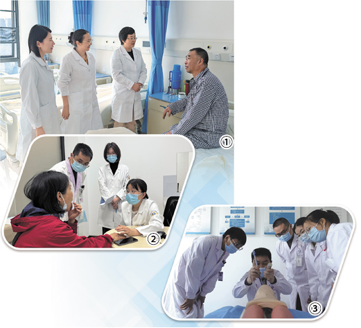 图①:北京大学第一医院大兴院区全科病房,全科医学科主任迟春花(右二)在查房。 北京大学第一医院供图