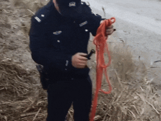民警将绳索牢牢绑在矿泉水瓶上