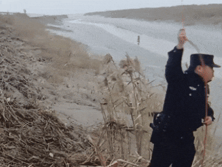由岸上的救援人员拔另一端安全绳