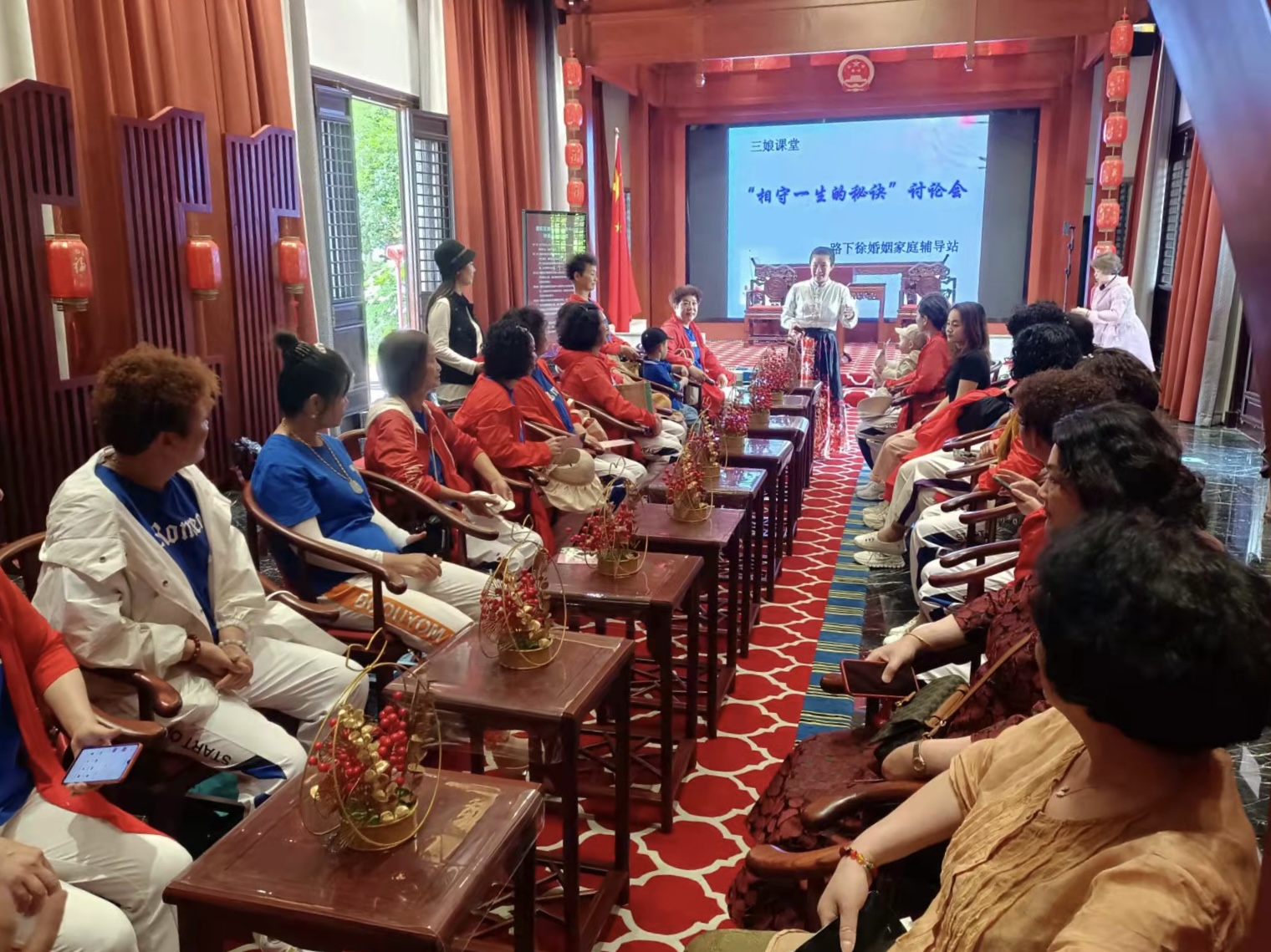 普陀区还通过实施“婚恋辅导”、开设“三娘课堂”等方式,解锁“和美家庭”的幸福密码,助力乡村的治理振兴。当前,普陀区已打造渔农村婚俗改革实验乡镇(街道)5个、乡、村两级婚姻辅导站点15个、婚俗文化展教基地10个,年开展婚恋辅导150场次。同时,针对普遍认为较难处理的婆媳关系,开设“三娘(婆婆娘、丈母娘、新娘)课堂”,以家庭沙龙、现身说法等形式向渔农村家庭分享养儿育儿、婆媳相处之道。目前,普陀区已形成1支30人的“三娘课堂”讲师队伍,年组织活动约100场次。