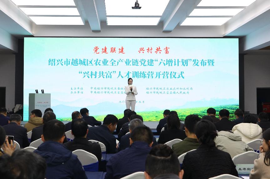近日,为深入贯彻落实省市党建引领“共富工坊”建设现场推进会部署精神,持续推动“共富工坊”提质增效,绍兴市越城区在富盛镇上旺村举行了农业全产业链党建“六增计划”发布暨“兴村共富”人才训练营开营仪式。
