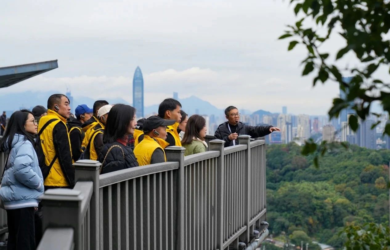 当天,一行人沿着龙盘山栈道拾级而上,在绿林与山间穿梭,感受着人文与自然景观相互融合。据悉,该栈道是2023年全新打造的慢行游步道系统,现已成为市民新的休闲观光地,吸引了不少游客登顶观景。