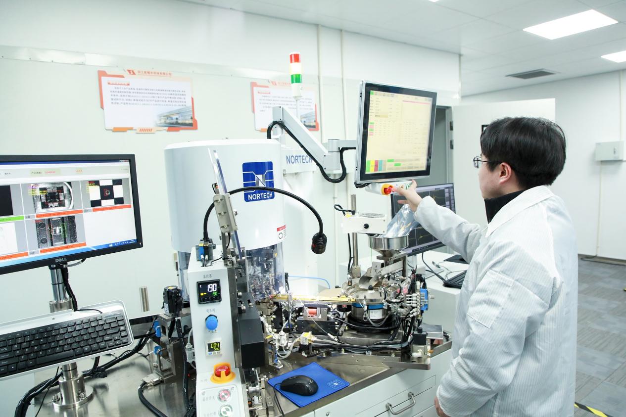 浙江星曜半导体有限公司员工在测试晶圆。温州市龙湾区委宣传部供图
