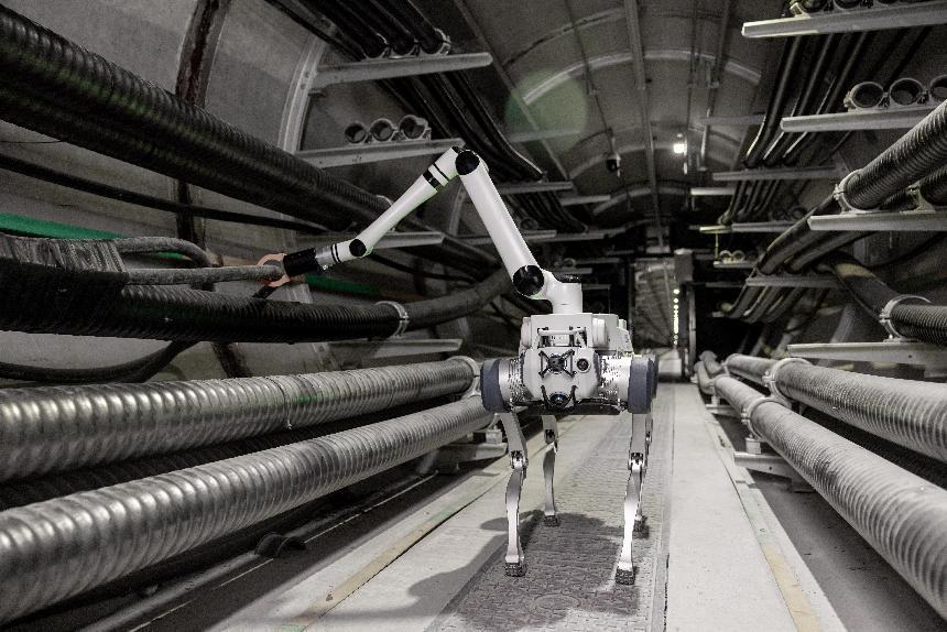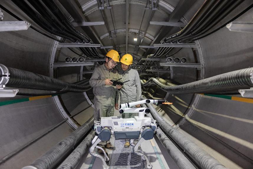 国网温州供电公司利用“四足巡检机器人”开展跨瓯江地下电缆隧道巡检。张健 摄