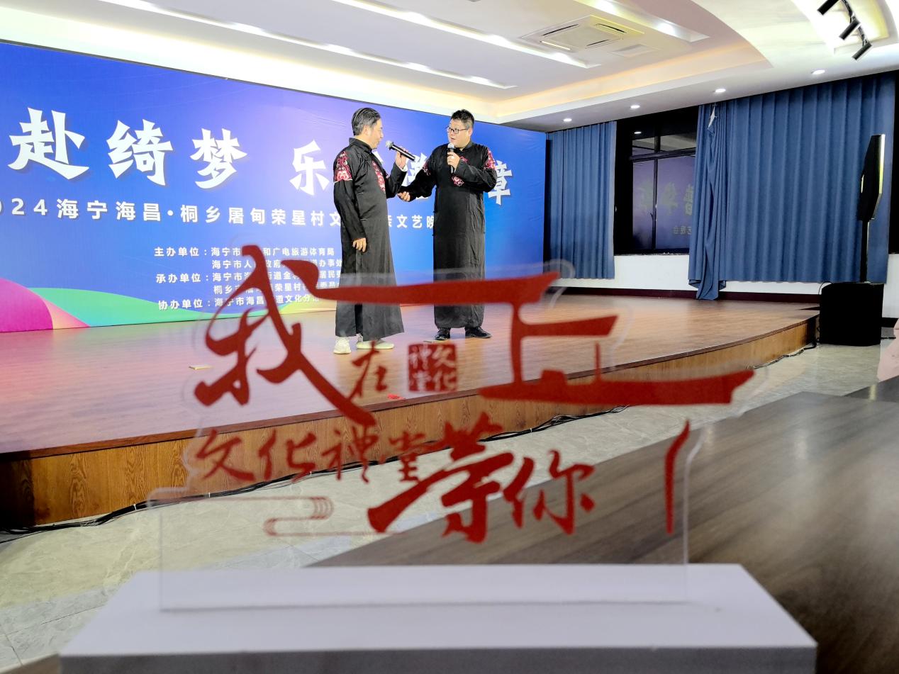 璀璨荣星,文艺赋美。近日,“扬帆赴绮梦 乐宴谱华章”2024海宁·桐乡屠甸荣星村文化走亲文艺晚会在浙江省桐乡市屠甸镇荣星村文化礼堂上演。