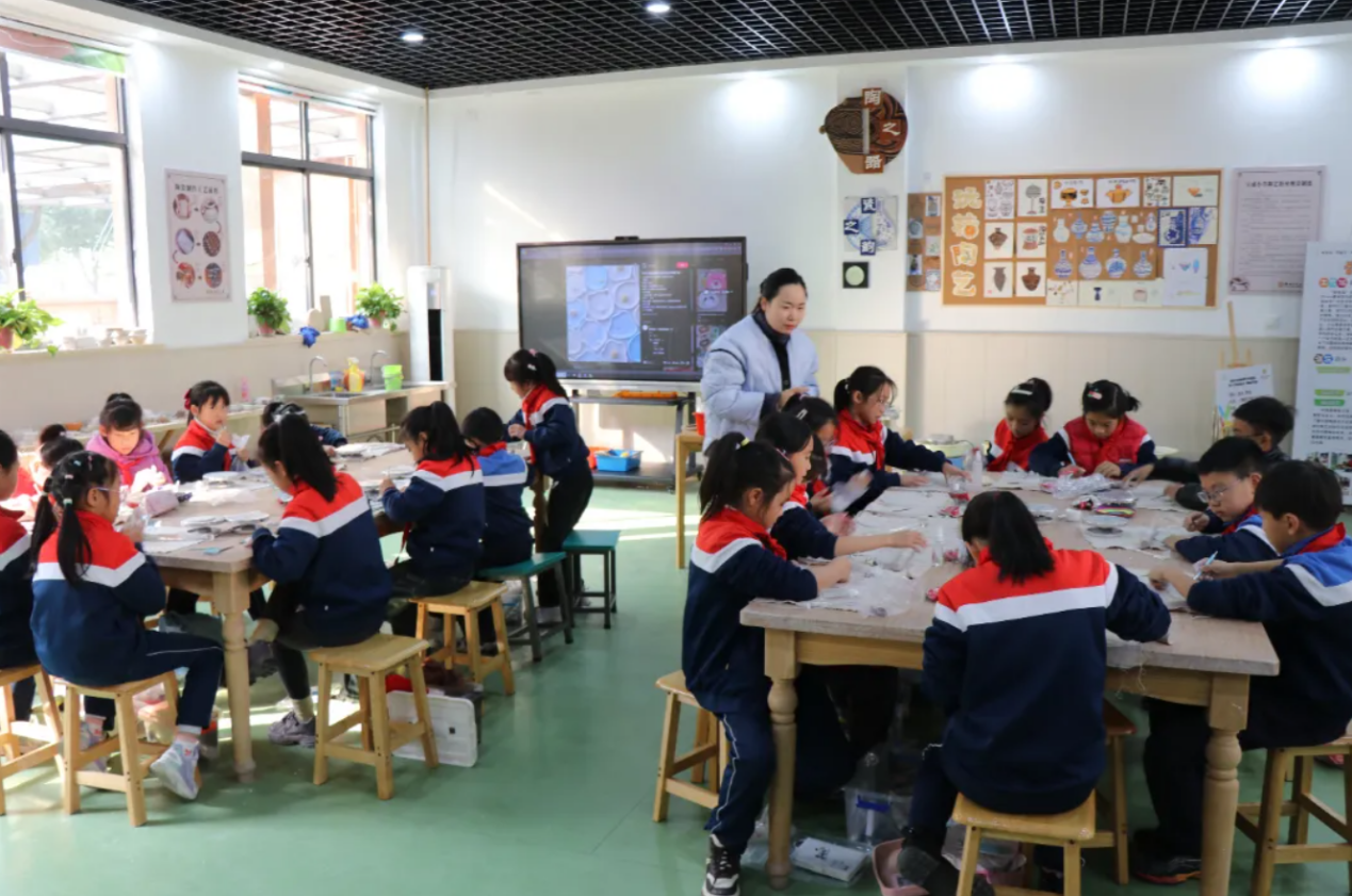 除了“变身”大厨外,在大成小学,学生们还可以在莹瓷园(陶艺教室)、纸艺园(衍纸、剪纸教室)、鲁班园(木工木艺教室)、罗敷园(手工编织教室)等不同主题的教室,享受各种劳动的乐趣。