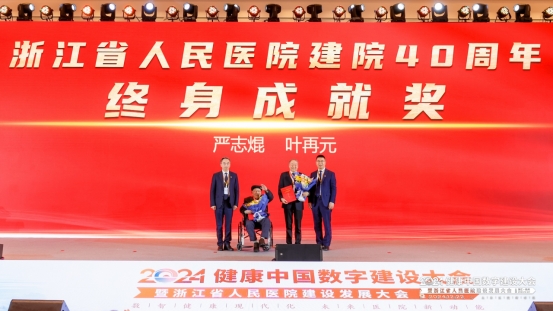 40年的成就,离不开一代代人的接力奋斗。会上,浙江省人民医院“建院40周年终身成就奖”和“建院40周年终身成就奖提名奖”颁奖仪式举行。曾任浙江省人民医院院长和心胸外科主任、心脏中心主任严志焜,以及在担任院长期间,推动医院改革,带领医院实现跨越式发展,推动医院业务量高速增长的叶再元获得“建院40周年终身成就奖”;浙江省人民医院激光整形外科原主任顾锡荣、原党委书记邹寿椿、超声科原主任徐佩莲、原甲状腺乳腺外科首任科主任姜蔚、护理部原主任陈爱初、膳食科原科长倪美根获“建院40周年终身成就奖提名奖”。