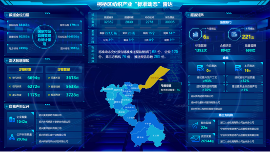 据悉,柯桥区市场监管局积极推动质量标准建设,依托纺织(化纤)产业质量基础设施一站式服务平台,全省率先打造“现代纺织产业标准动态雷达”数字大脑,联通“浙江标准在线”“浙里检”等线上平台,导入国际、国内等标准3万余项,为1324家企业推送“标准动态报告”228份,制(修)订纺织类国际、国家、行业等标准209项、“浙江制造”标准21项,助力35家企业83类产品申报全国企业标准“领跑者”,总量居全市第一。