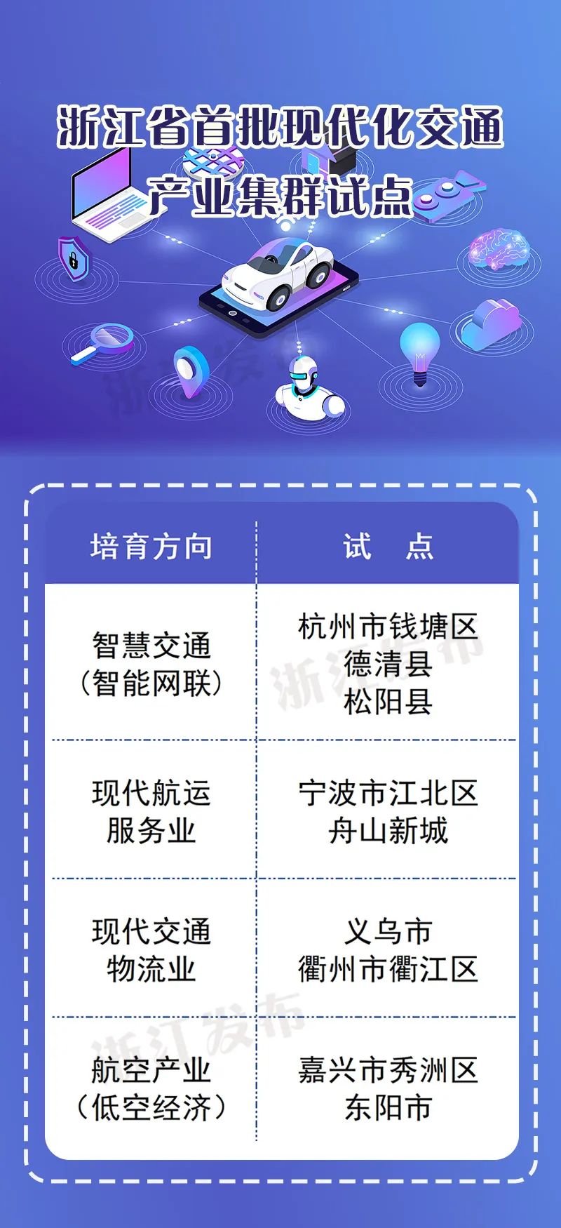 近日,省交通运输厅公布浙江省首批现代化交通产业集群试点,共9地入选。