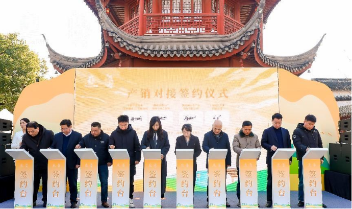 随后,现场开展了“两山农品”区域公用品牌推介和“湖州湖羊”“湖州湖蟹”“湖州好大米”等特色优质农产品推介,并举行了农业合作项目产销对接签约仪式,来自两地的农业主体进行深入交流与合作洽谈。他们共同探讨农产品销售、市场拓展、品牌建设等方面的合作机会,为两地农业的未来发展注入了新的活力和动力。现场签约仪式上,双方代表签署了合作协议,标志着两地农业合作迈出了坚实的一步。