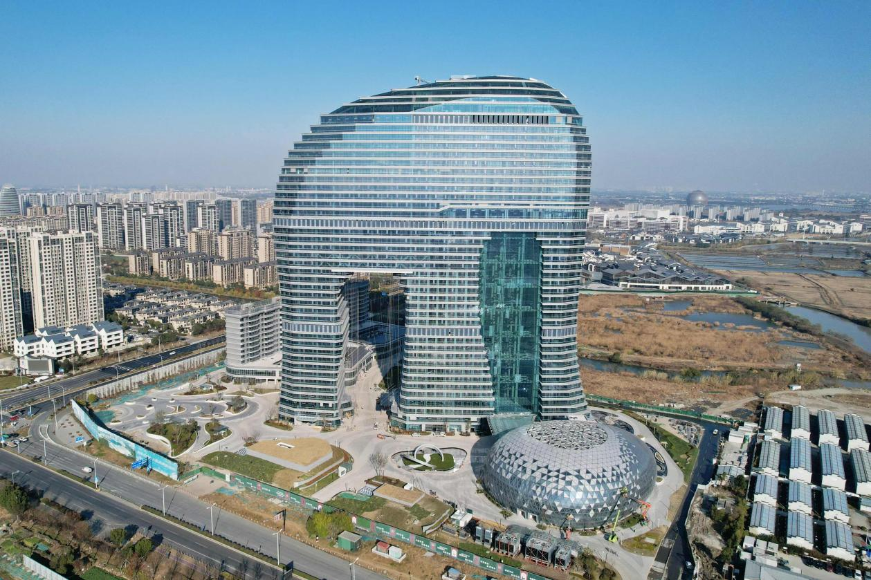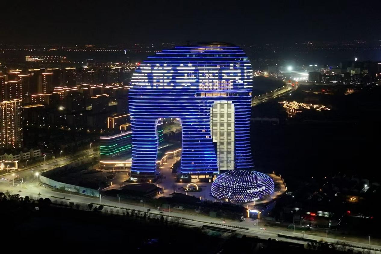 该建筑位于浙江省湖州市南浔区,由中国能建建筑集团EPC总承包模式承建,建筑面积25.7万平方米,建有180米超高层大象酒店、水滴形国际会议中心、商住综合体,是浙北地区集展览会议、休闲度假、商务接待、研发创新于一体的地标建筑。