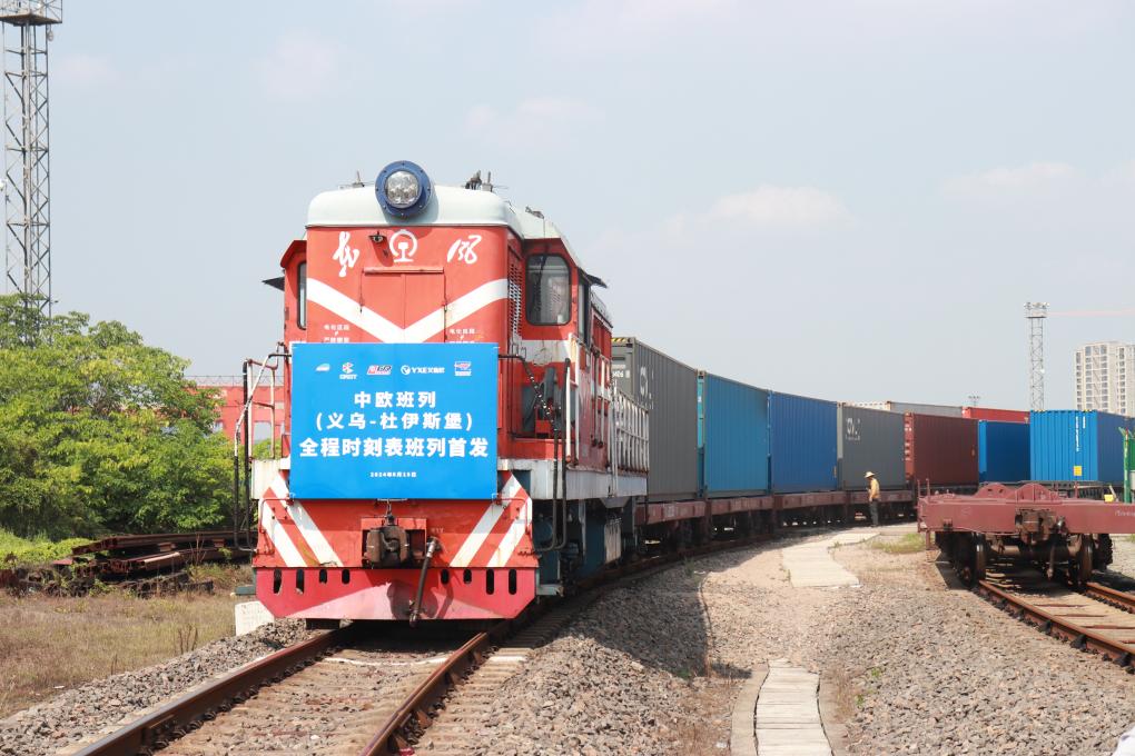 6月15日,一趟中欧班列从铁路义乌西站开往德国杜伊斯堡,标志着长三角首趟全程时刻表中欧班列(义乌-杜伊斯堡)开行。