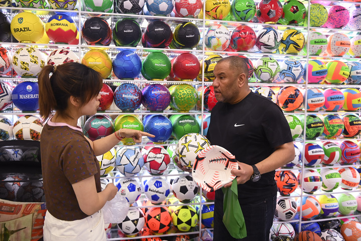 从足球、运动服等体育用品,到助威棒等赛事周边,义乌奥运氛围浓厚。