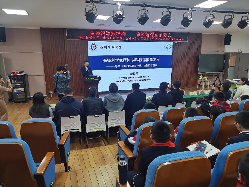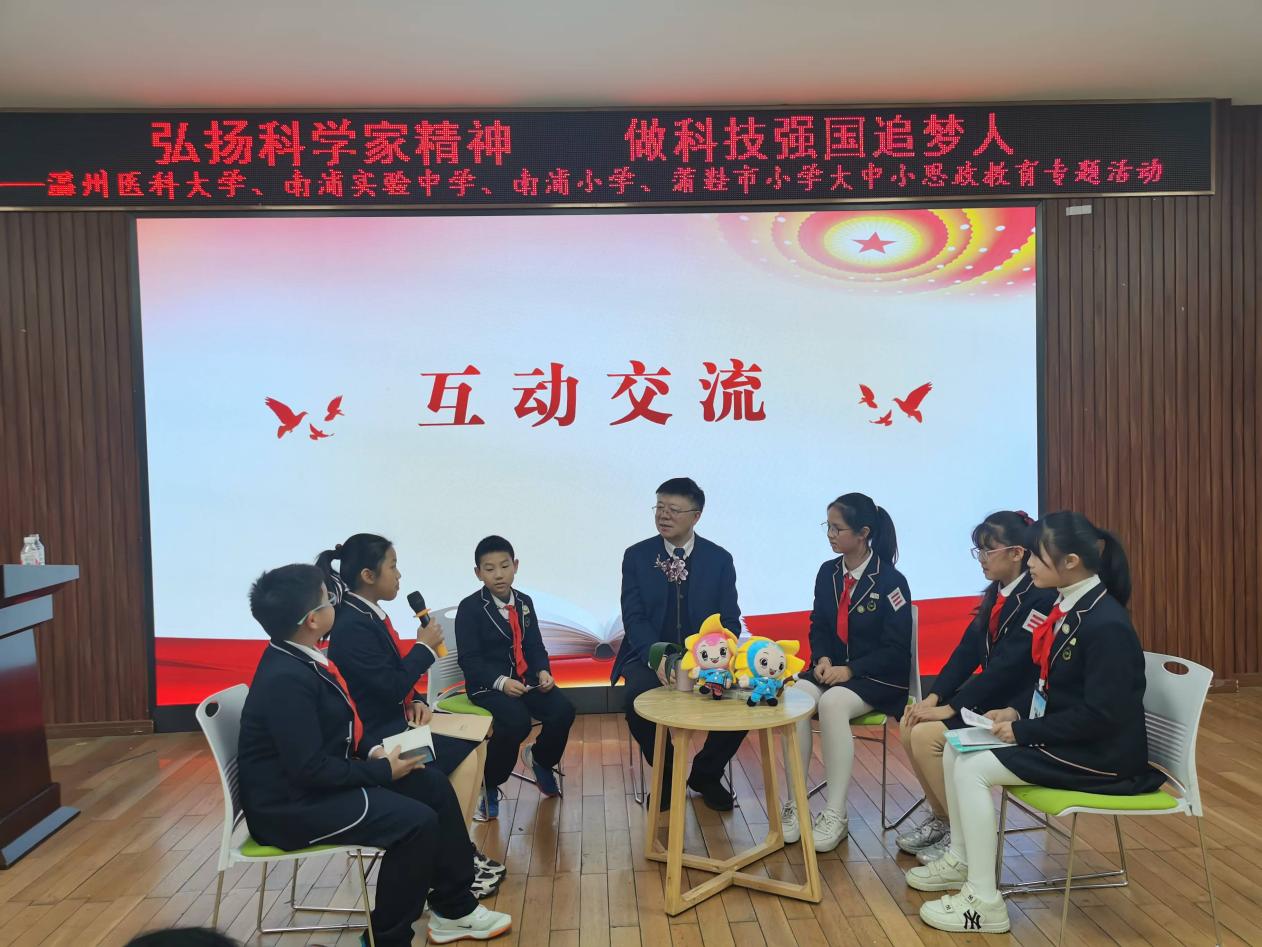 日前,一场以“弘扬科学家精神,做科技强国追梦人”为主题的思政专题课在浙江省温州市南浦小学举行。课堂上,中国工程院院士、温州医科大学校长李校堃为来自温州市南浦实验中学、温州市南浦小学和温州市蒲鞋市小学的同学们讲述科学家精神。