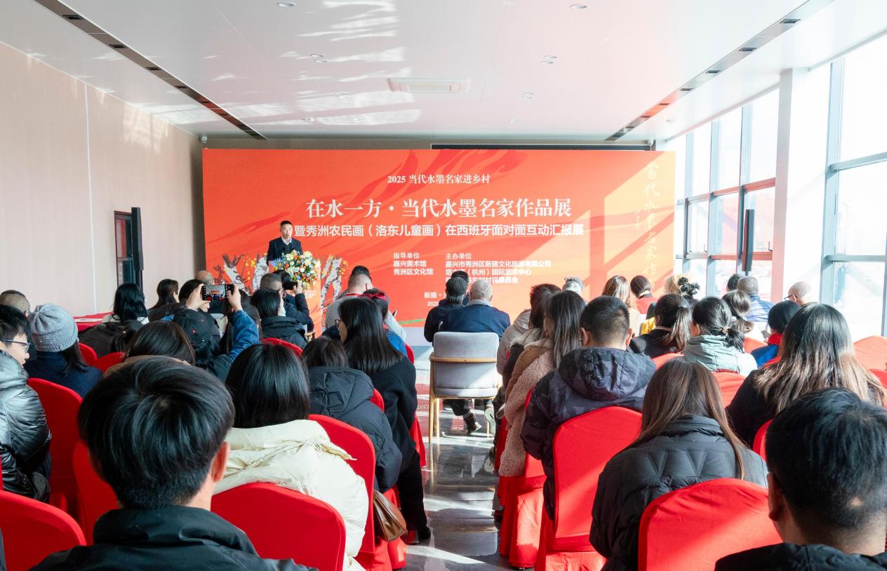 1月6日,“‘当代水墨名家进乡村’在水一方·当代水墨名家作品展暨秀洲农民画(洛东儿童画)在西班牙面对面互动汇报展”在浙江省嘉兴市秀洲区新塍镇举行。现场共展出53幅水墨作品和28幅面对面互动汇报展作品。