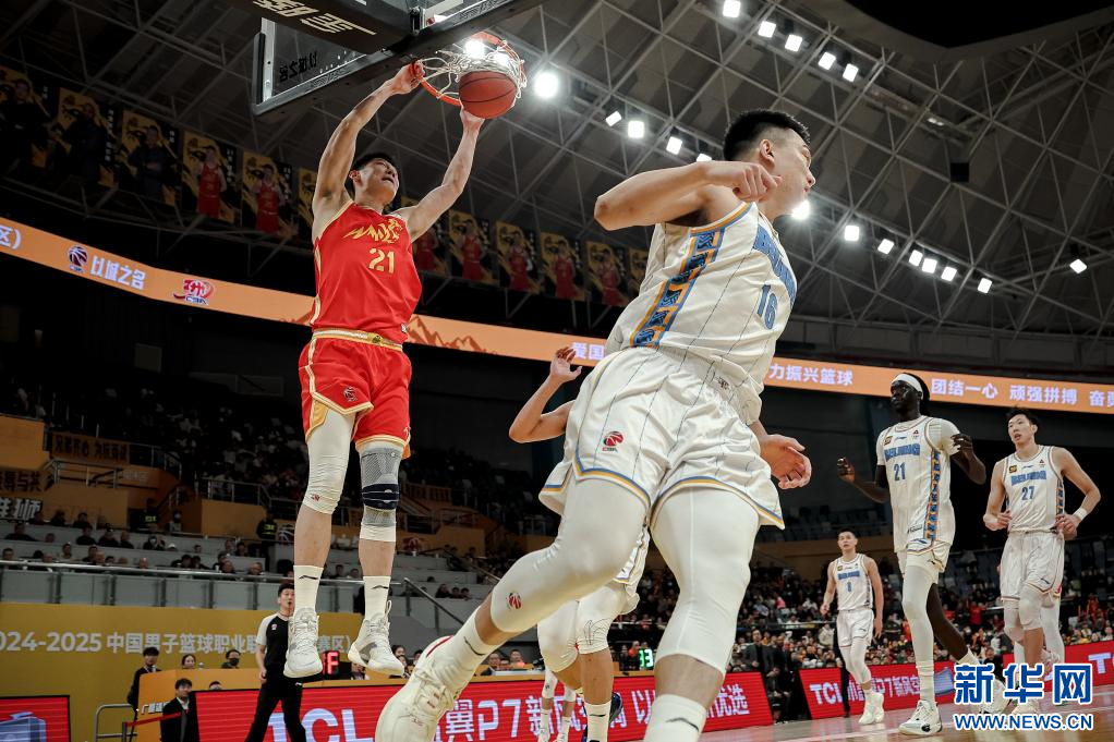 当日,在2024-2025赛季中国男子篮球职业联赛(CBA)常规赛第28轮比赛中,浙江方兴渡队主场83比79战胜北京北汽队。新华社记者 江汉 摄