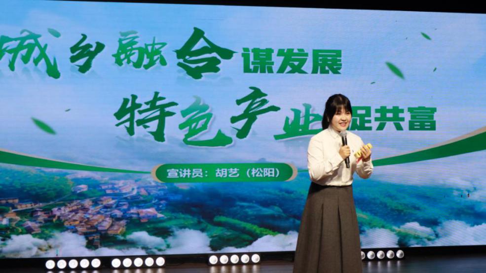此外,来自松阳县的胡艺手持快板,将松阳推动城乡融合发展的好政策、好办法编成顺口溜;浙江理工大学的研一学生鲍伊悦慷慨激昂地向现场观众许下“请党放心,强国有我”的庄严承诺;浙江农林大学宣讲员黄玺洁和孙晓钰采用两代青年对话的情景式宣讲,传递出青年人接续奋斗的使命担当……一个个宣讲生动呈现了理论的丰富解读和传播方式。