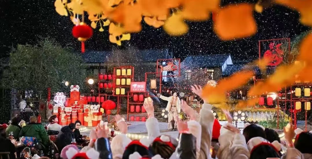 据悉,本场“村晚”聚焦于地方特色与文化传承,通过线上线下的互动,营造出温馨而浓厚的节日氛围。舞台设计融合喜庆与年味元素,与丽水街的古色古香相得益彰。