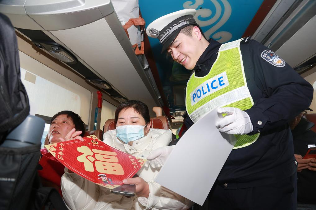 在岱山县长途客运站、燕窝山客运码头,岱山县公安局交警大队民警辅警向驾驶员、旅客、骑手发放春运宣传资料,讲解道路交通安全知识,同步开展春运期间客运车辆安全检查,为旅客的平安出行提供保障。据预测,2025年春运期间,岱山县总车流量约5.5万车次。