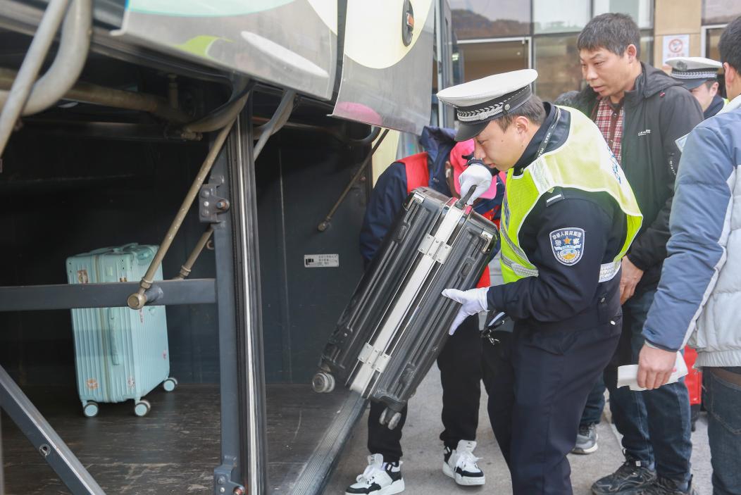 在岱山长途客运站,岱山民警协助客运旅客存放行李,让旅客的归家之路更加暖心、安心。