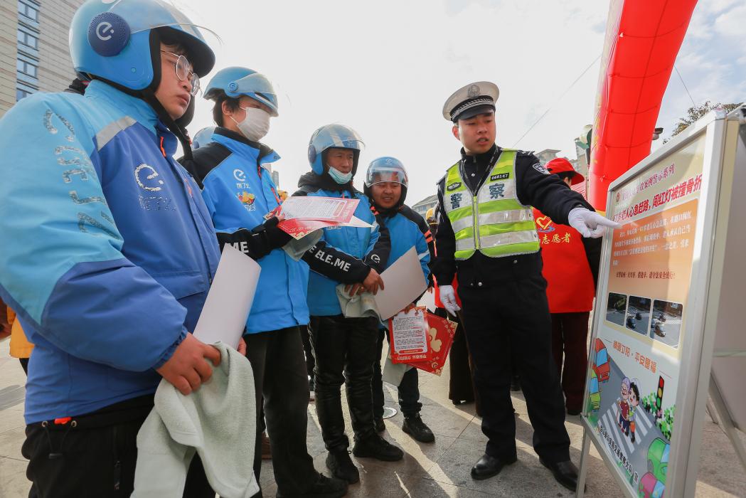 期间,岱山交警为外卖骑手送上春运安全指南,提醒每位骑手在坚守岗位的同时务必安全出行。