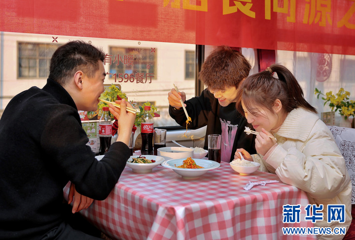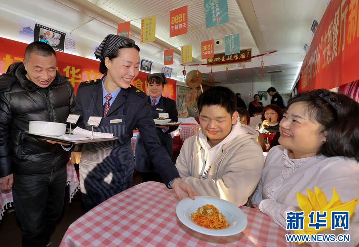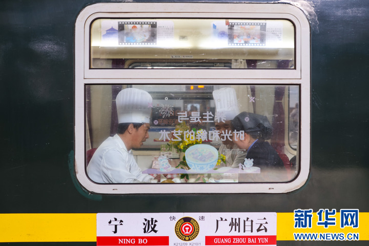 1月13日,乘客在铁路杭州客运段甬广车队K212次列车上品尝新品菜肴。