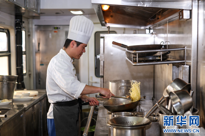 1月17日,铁路杭州客运段甬广车队炊事员王利茂在K212次列车餐车上烹饪菜肴。