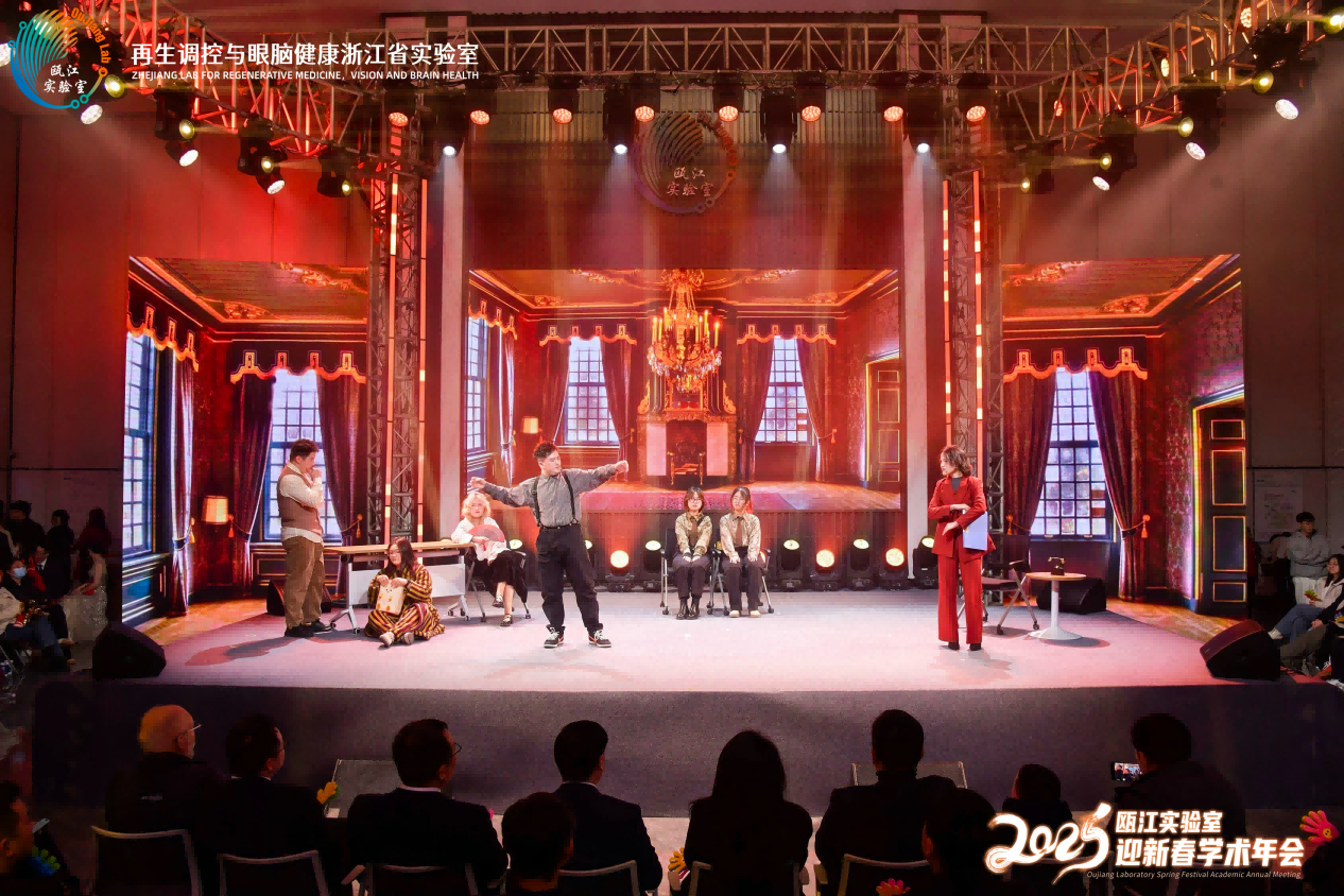 当科研工作者走出实验室、走上舞台,会有怎样的惊喜变身?1月17日,瓯江实验室举办2025迎新春学术年会,瓯江实验室的科研工作者、工作人员和学生们,共同上演了一场既有学术深度,又有乐趣互动,还充满创新活力的年会。