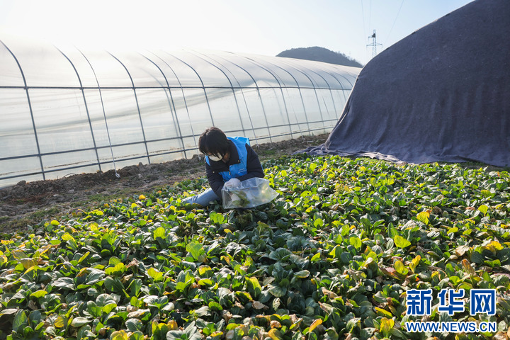 1月15日,在道场乡红里山村的蔬菜种植基地,工作人员在采样准备进行农残检测。