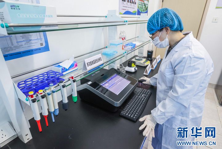 1月15日,在道场乡的农产品检测室,工作人员在进行农残检测。