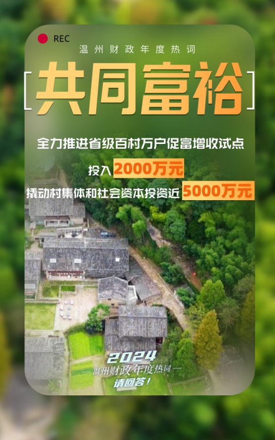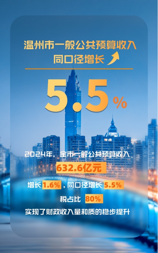 日前,温州市财政局(下文简称温州财政)公布2024-2025温州市政府“账本”。在刚过去的2024年,温州财政全面推进“四大振兴”,深入开展“十大攻坚”,硬核保障“强城行动”,全力推动积极的财政政策加力提效……全市一般公共预算收入632.6亿元,税占比80.0%,实现了财政收入量和质的稳步提升。一起通过6个“年度热词”读懂温州财政的2024。
