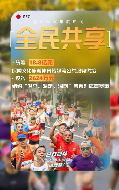 2024年,温州财政统筹18.8亿元保障文化旅游体育传媒等公共服务供给,推动人文精神与城市气质相得益彰:投入8118万元支持文艺精品创作和展演,擦亮“中国戏曲故里”金名片;投入4014万元聚力打造南戏文化园、青灯文博等文化产业重点项目,撬动社会投入超8亿元,形成全社会共同投入发展文化事业的良好局面;投入1980万元支持建成百姓健身房、笼式足球场等公共体育设施130余个,持续健全全民健身服务体系;投入2624万元组织“温马、温足、温网”等系列体育赛事,点燃群众运动激情。(徐景萱/文 温州市财政局/供图)
