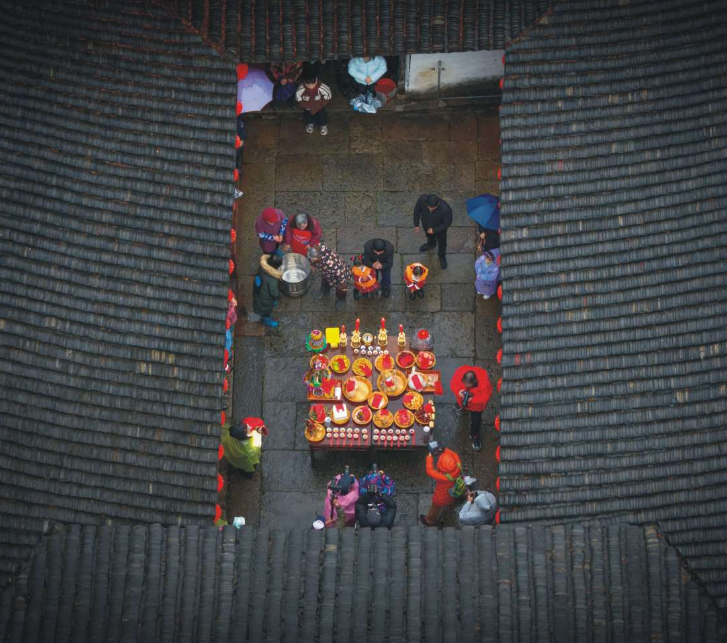 随着时代发展,为适应整体社会环境的变化,“祝福”仪式继续在发生着演变。民间灵动的实践,新的物质基础和社会观念都为“祝福”仪式的延续提供了新的养料。如景区的文化展演并没有对百姓仪式产生过多影响,传统方式的精神生活与新兴的商业动机并行不悖,各取所需。
