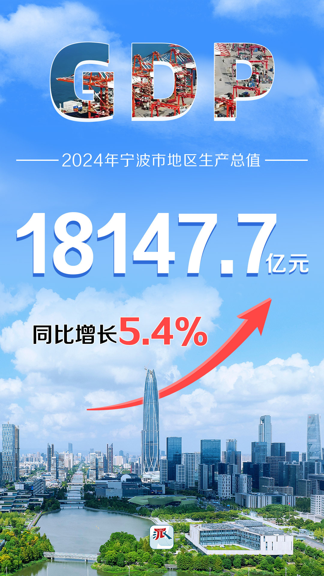据宁波市统计局发布2024年宁波经济运行相关数据,根据全省地区生产总值统一核算结果,2024年全市地区生产总值18147.7亿元,按不变价格计算,同比增长5.4%。
