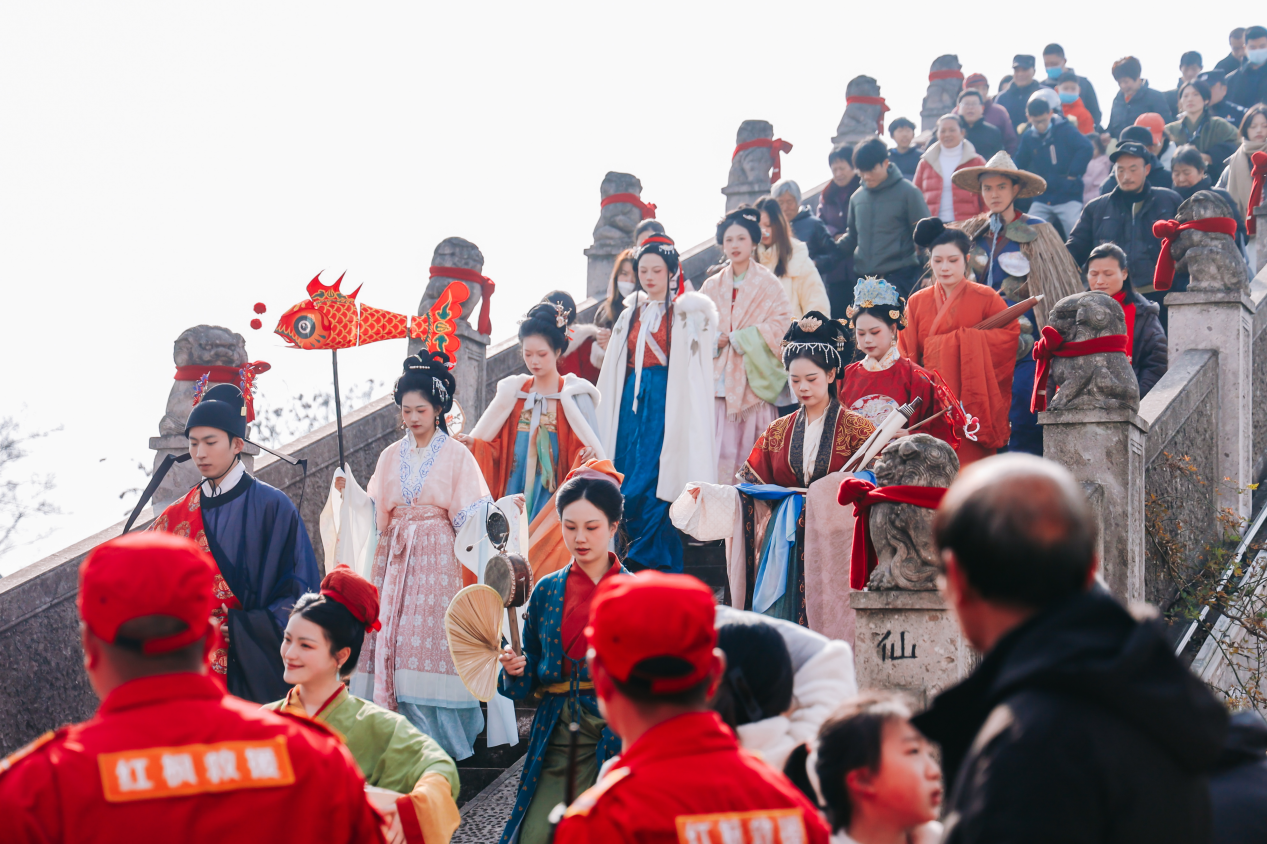 活动当天,喜庆的锣鼓声响起,枫桥镇台阁市活动和全民划拳比赛拉开了帷幕。六支队伍——威风凛凛的开道队伍、匠心独运的三老相公台阁、文化底蕴深厚的三贤台阁、生动活泼的舞狮舞龙队伍、传统韵味十足的枫桥十番队伍、气势磅礴的威风腰鼓队以及古色古香的汉服队伍,从三贤文化广场出发,沿着充满历史印记的街道,穿梭于枫桥经验陈列馆、婺越通衢广场、青年街,最终抵达枫桥大庙。在庙前广场上,各队伍尽情展示着精湛的表演,与热情洋溢的群众亲密互动,现场人声鼎沸、热闹非凡,洋溢着浓浓的年味与欢乐的气息。