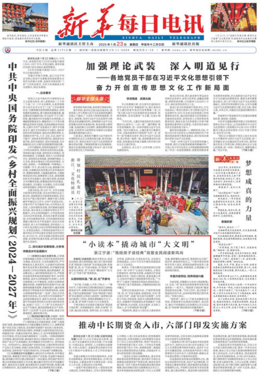 宁波从中华民族国学经典、新时代经典、宁波乡贤经典著作中,筛选出200本“我陪孩子读经典”推荐书单,统筹购买12万册、发动社会捐赠30万册,免费送上阅读大礼;当地还梳理发布138个传统文化走读点位地图,引领孩子在历史文化遗址、文化名人故居中身临其境品读经典。