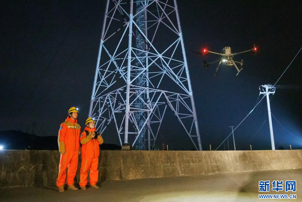 除了运用无人机机巢自主巡检技术加强巡视频率,国网温州供电公司的工作人员还会在夜间对无人机机巢无法覆盖的线路进行“人工+无人机”巡检。