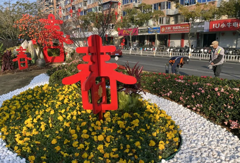 不仅如此,在温州的街头,处处可以看到忙碌的身影。清扫路面的环卫工人早早投入到城市的每个角落,清扫车辆穿梭不停,志愿者们自发加入,为街区装饰,在公共场所张贴春联,挂上“福”字,增添浓浓的节日氛围。