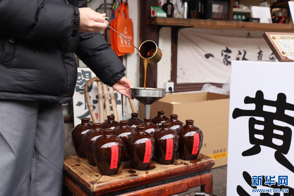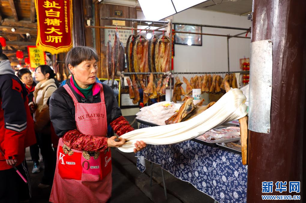 走进安昌古镇的市集,舂年糕、扯白糖、裹粽子……记忆里的习俗拉开了新春序幕。新华网 宋越 摄