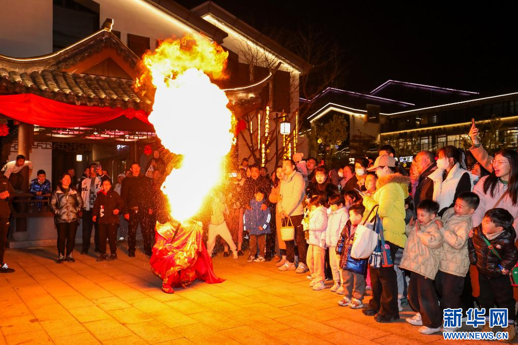 在绍兴市越城区迎恩门水街,上演着杂技演艺(变脸+喷火)。新华网发 绍兴市委宣传部供图