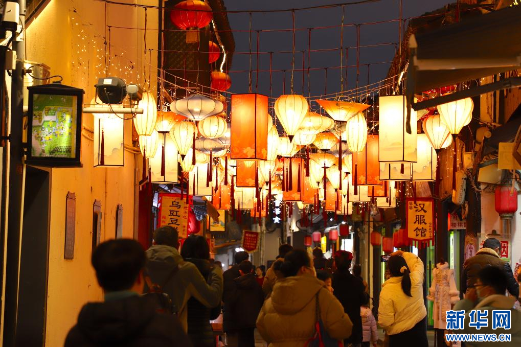 夜幕降临,仓桥直街灯光璀璨,人潮涌动。新华网发 郭妍廷 摄