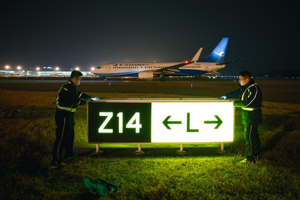 “机场助航灯光系统大体可以分为进近灯、跑道灯、滑行道灯、标记牌、机坪泛光照明系统等,飞机起降、滑行都离不开助航灯光的指引。”作为机场的“掌灯人”,朱仁杰深感责任重大。