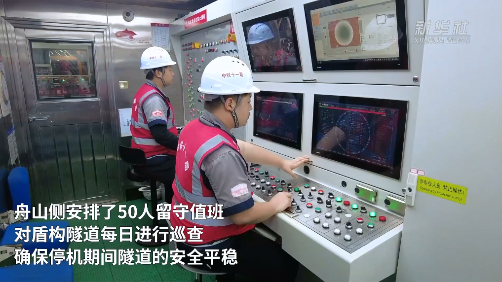 为确保工程稳步推进,春节期间,金塘海底隧道宁波侧仍有150名工人坚守岗位,施工现场24小时不停工作业;舟山侧安排了50人留守值班,对盾构隧道每日进行巡查,确保停机期间隧道的安全平稳。