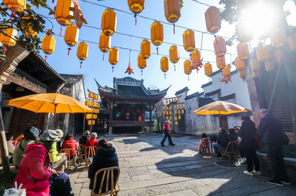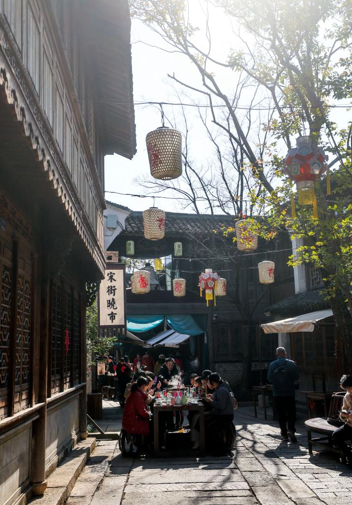 春节期间,浙江省嘉兴桐乡市濮院镇的濮院时尚古镇内张灯结彩、喜气洋洋。古镇以“濮院时尚年”为主题,推出多场趣味互动和特色体验活动,串联起非遗文化、特色美食、市井烟火等新春主题板块,让市民游客享受到独具江南水乡特色的年味文旅盛宴。新华社记者 徐昱 摄