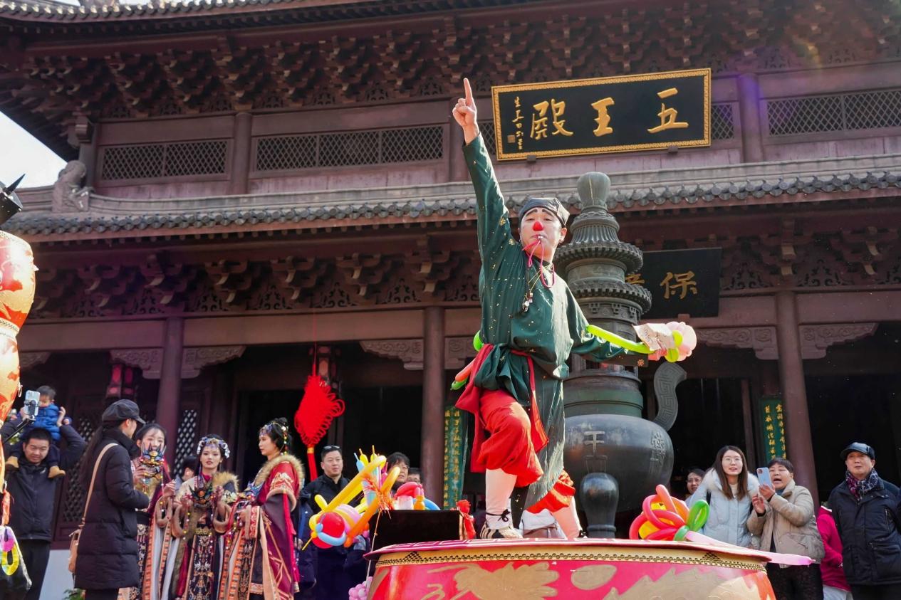 钱王祠内,梅花、牡丹、杜鹃等各色花卉竞相开放,形成了一幅美丽的春日画卷。游客们漫步于花海之中,纷纷拍照留念,感受着春天的气息。活动现场,有精彩的非遗表演,如称有“百戏之宗”的傩戏,还有大众喜闻乐见的特别表演——国朝魔术,与钱王祠的繁花盛景一同为游客们带来视觉和听觉的盛宴。