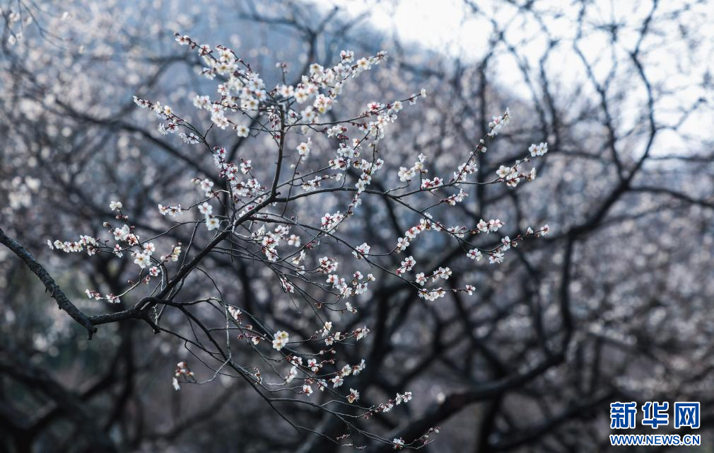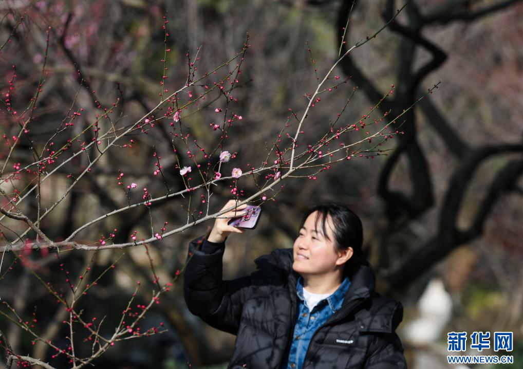 超山景区以梅景而出名,有悠久的种植历史,共种植梅花万余株,包括白梅、红梅、绿萼梅等梅花品种,以观赏“古、广、奇”三绝的梅花而闻名,有着“十里梅花香雪海”的美誉。新华社记者 徐昱 摄